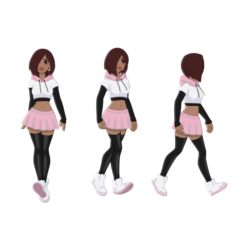 A zip file containing the Rig with fully functioning leg IKs, master controllers and handles for selecting body parts. you can disable them if they are getting in your way. Also to switch between IK and FK, simply select the icon and swap between the IK and FK drawing substitutions